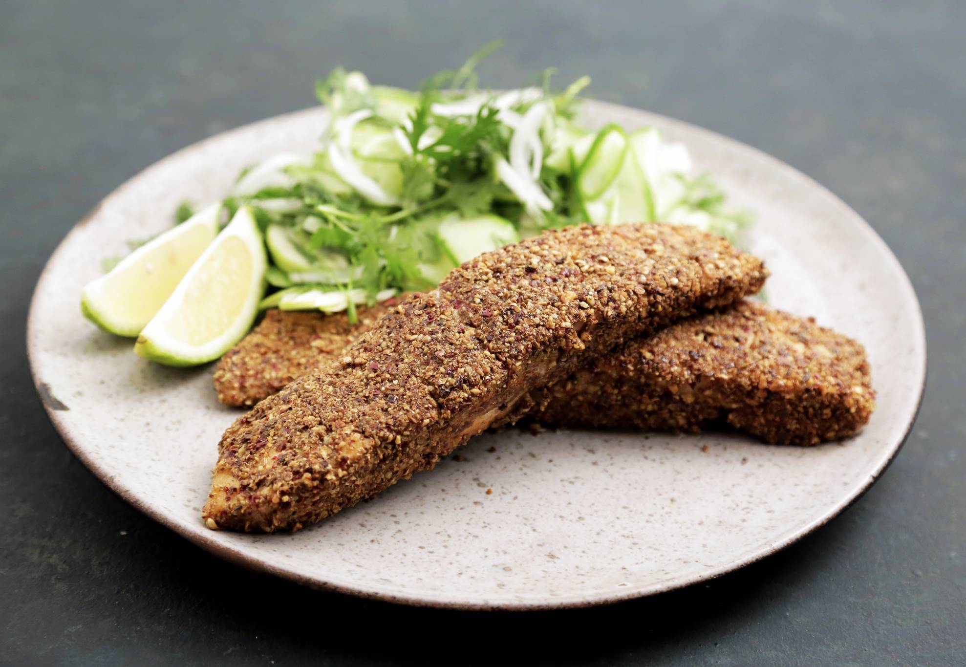 السالمون المحمر بالدقة المصرية والسلطة الخضراء