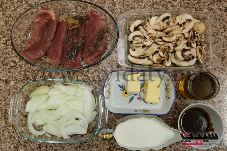 الستيك المشوي مع الفطر والكريمة خطوة بخطوة بالصور