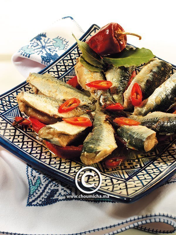 - في طبق التقديم، تصفف الخضر والسردين ويسقى الكل بمرق الطهي.