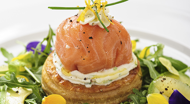 السلمون المدخن بحشو جبن الكريمة وبيوريه الس