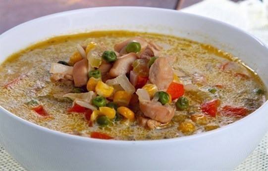 4.  يصب مرق الدجاج والكريما إذا استعملت أو النشا .