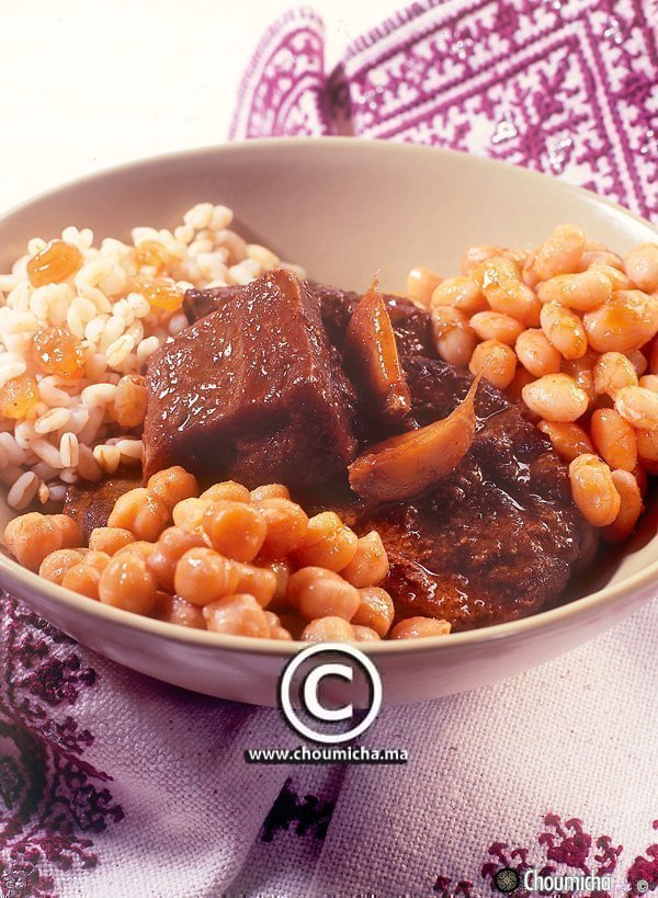 - تقدم الطنجية ساخنة مرفوقة بالقمح، الزبيب و الحمص.