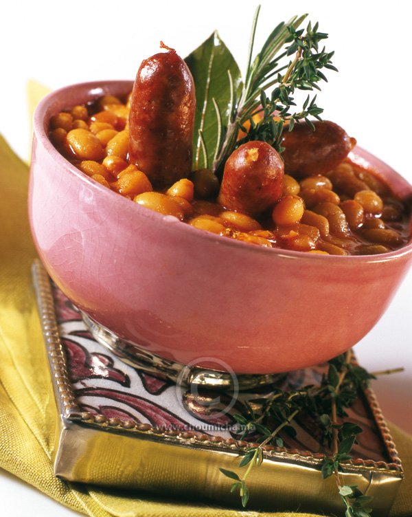 - تضاف النقانق والأعشاب المنسمة المفرومة إلى الطنجرة وتترك تنضج لمدة 10 إلى 15 دقيقة ثم تزال من فوق النار.