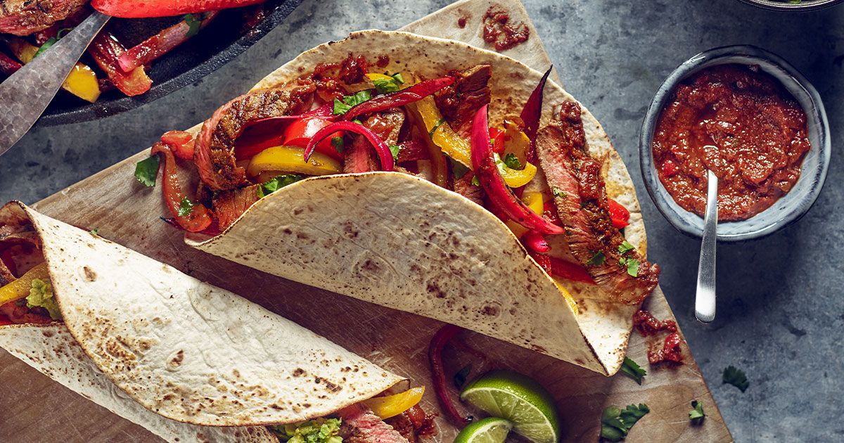 1- حمّي الزيت في مقلاة على حرارة مرتفعة. أضيفي البصل والقليفلة وقلّبي لبضع دقائق حتى تتحمّر الخضار قليلاً. إرفعي الخضار من المقلاة. 2- زيدي شرائح اللحم واطهيها على حرارة مرتفعة لدقيقتين حتى يتغير لونها من كل الجهات. 3- أعيدي الخضار الى المقلاة مع صلصة ماركس وسبنسر المكسيكية. قلّبي لدقيقتين ثمّ إرفعي المقلاة عن النار، أضيفي عصير اللايم والكزبرة وقلّبي من جديد. 4- قدّمي الطبق الى جانب الارز، على شكل لفائف او في اكواب من الخس مع الافوكادو المهروس او الكريمة الحامضة.