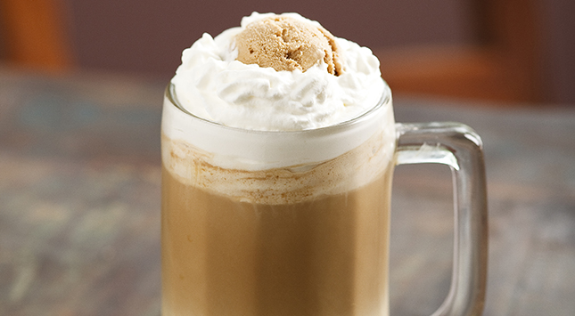 يوضع الآيس كريم في قدر فوق نار منخفضة الحرارة. يضاف الحليب المبّخر والقهوة ويُسخن لمدة 3 دقائق تقريبًا حتى يدفأ. يُصب الخليط في أربعة أكواب ويضاف على وجه كل كوب 1 ملعقة كبيرة كريمة مخفوقة ويُرش بجوزة الطيب. يُقدم مباشرة.