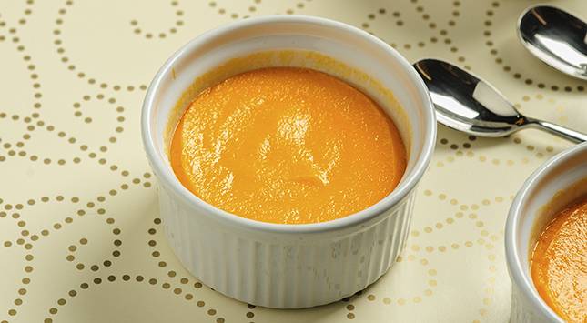 يُخبز الكاسترد في الفرن على درجة حرارة 160 مئوية لمدة25 دقيقة. ثم يُبرد في الثلاجة.