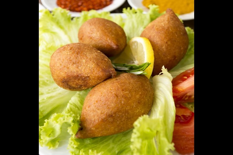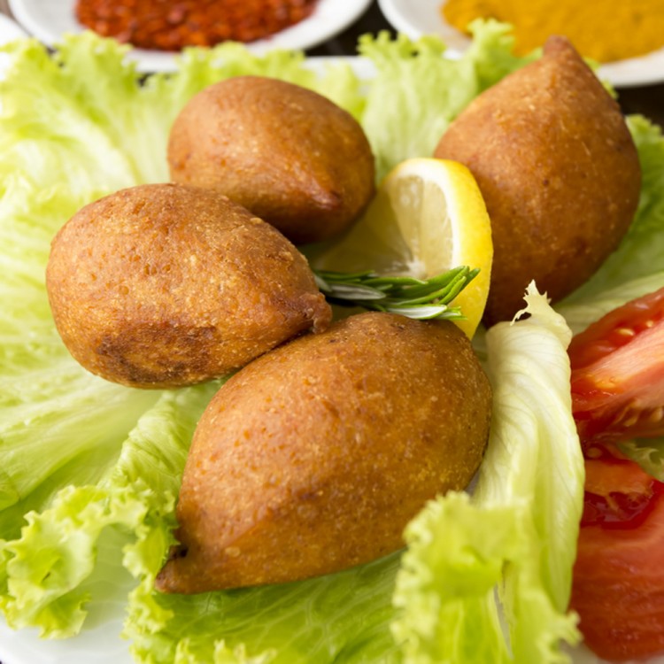 7. يحمى الزيت في مقلاة عميقة، على نار متوسطة، ثم توضع حبات الكبة الحبة تلو الأخرى وتحرك بعد 2 – 3 دقائق من وضعها في الزيت الساخن، وتقدم الكبة المقلية ساخنة.