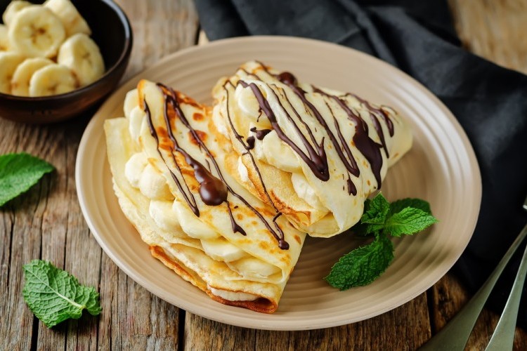 الكريب الحلو بالشوكولاتة والموز .. يمكن تحضير عجينة الكريب وتقديمها بالمالح والحلو، حضري تحلية شهية وسهلة للعائلة وقدميها مزينة بقطع من الموز والشوكولاتة الشهية واللذيذة