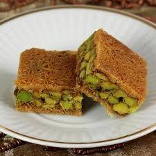- ضعي طبقة من الكنافة في صينية ونضغط عليها جيدا نضع الفستق ونفرده في المنتصف ونضع طبقة أخرى من الكنافة ونضغط عليها وندخلها الفرن إلى أن تحمر ونضع السيرب وتقدم .