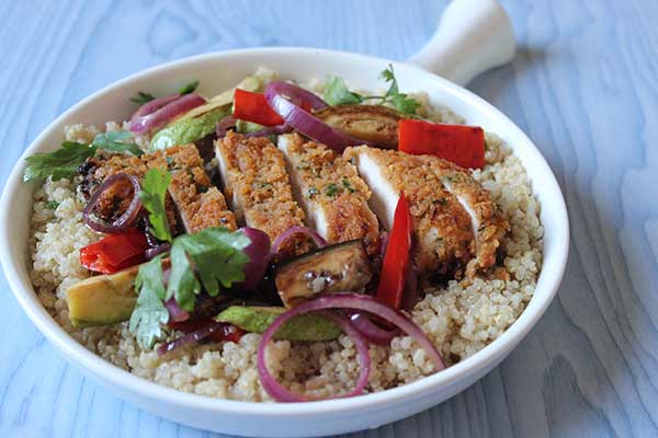 Home وصفاتالكينوا مع دجاج المقرمش والخضراوات