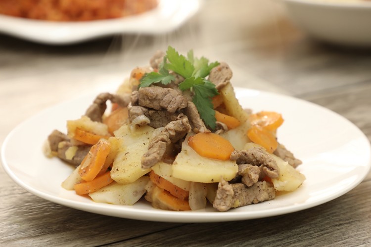 - صبي الماء الساخن وخففي النار وغطي المقلاة واتركيه لمدة 20 دقيقة حتى تنضج الخضار مع اللحم.