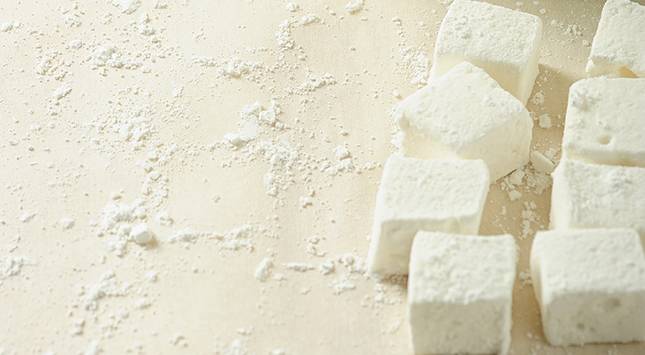 يُترك المارشميللو بدون غطاء لمدة 6 ساعات على الأقل في مكان جاف وبارد، ثم يُقطع ويُقدم.