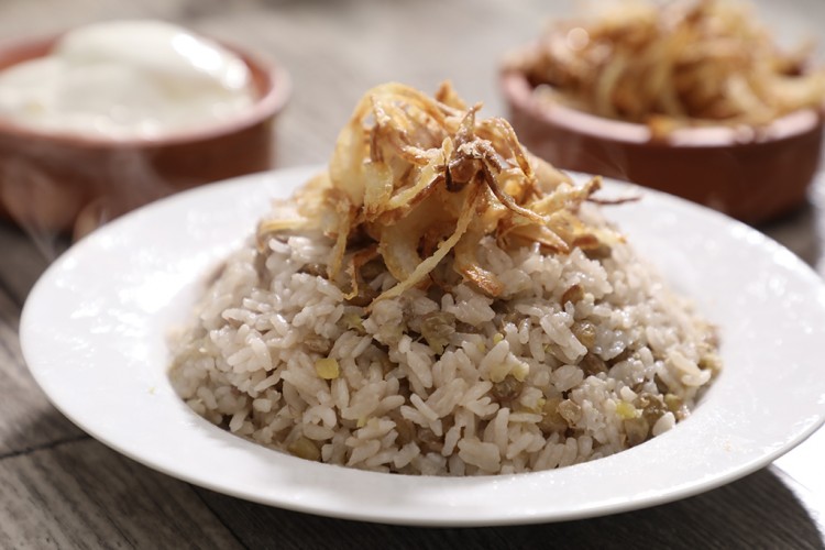 - اتركي المجدرة حتى ينضج الأرز تماماً، وقدميها ساخنة مزينة بالبصل المقلي المقرمش بجانب السلطة واللبن الزبادي.