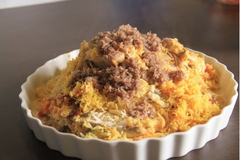 - نضيف الأرز ونقلب جيدا وعندما يجف الماء نهدئ النار ونتركه ينضج حوالي ربع ساعة.
