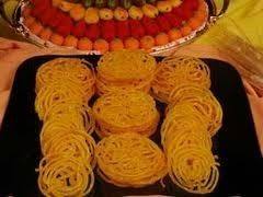 - يصنع على شكل دوائر فوق بعضها وتترك حتى تحمر وترفع من الزيت وتغمس فى الشربات وتكرر العملية حتى انتهاء باقى العجين ويقدم