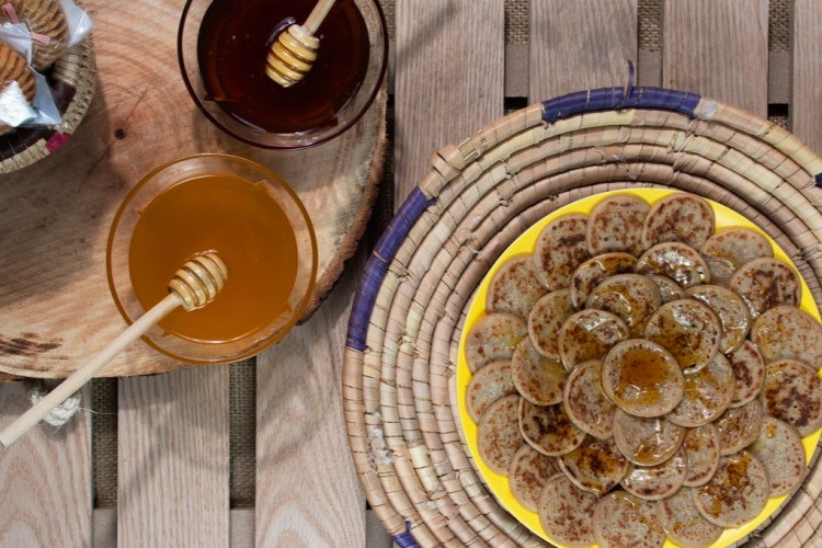 4. وزعي كمية من العجينة على شكل دوائر في المقلاة واتركيها لمدة دقيقة ثم اقلبيها على الجهة الأخرى حتى تصبح ذهبية اللون.