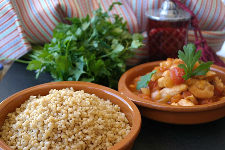 4. لطبخ المفتول: يوضع قدر من الماء على النار ليغلي ثم توضع فوقه مصفاة معدنية مدهونة بالسمن.