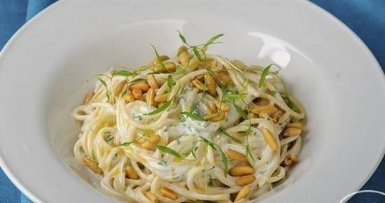 - تُقلب الزبدة والصنوبر على الوجه وتقدم.
