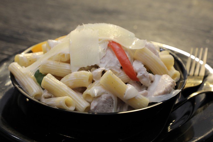 - اسكبي المكرونة بطبق التقديم، وزيني بشرائح من جبن البارميزان.