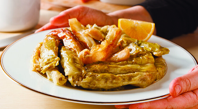 عندما ينضج الملفوف يترك لمدة ربع ساعة، ثم يقلب على صينية واسعة ويقدم مع عصير الليمون والكمون (يمكن عمل صلصة مكونة من عصير ليمون وكمون وثوم مدقوق ناعم وملح وفلفل أسود).
