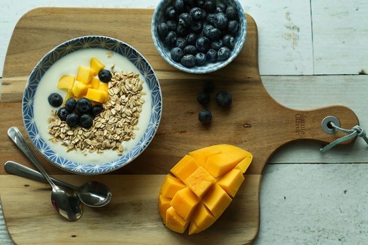 2. بعدها، يُضاف الشوفان، مع الاستمرار في التقليب على نار هادئة، حتى يبدأ في الغليان، ويكتسب الخليط قواماً سميكاً بعض الشيء. ويُرفع عن النار.