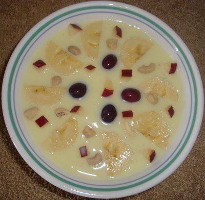 - 420 جرام من سلطة الفاكهة مصفاة ومهروسة