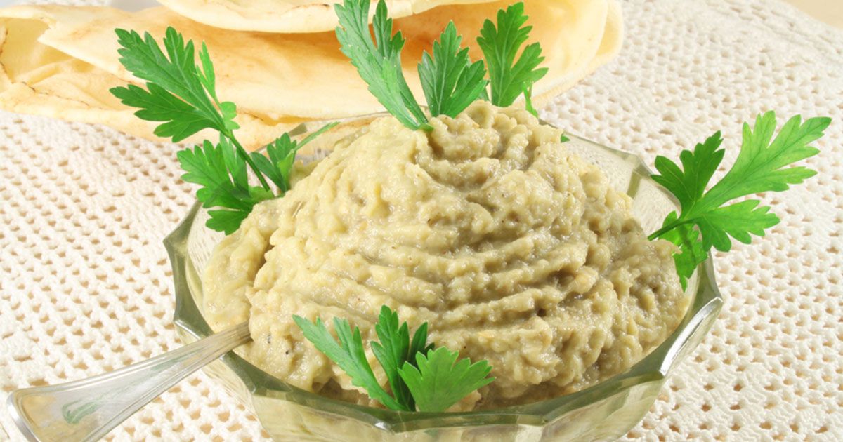 1- قشّري حبات الباذنجان واهرسيها في وعاء.