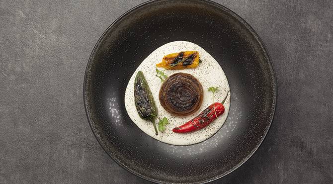 في نفس مقلاة البصل يحرق الفلفل من كل الجوانب.