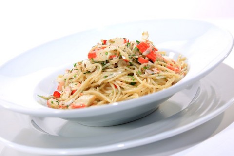 - هنصفى الباستا من الماء ونقلبها مع الفلفل الحار ونضيفها لطبق التقديم ونزين الوجه بزيت الزيتون.. بالهنا والشفا.