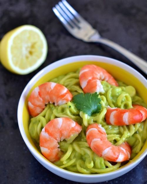 - تهرس الآفوكادو ويضاف ما تبقى من عصير الحامض و الثوم و اللبن و اللبنة و تقدم مع الباستا.