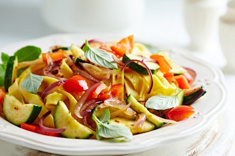 - أضيفي الكوسا والفلفل وقلبي لمدة 8 دقائق حتى تطرى الخضار.