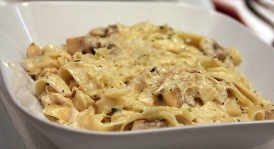 - نشوي صدور الدجاج، وفي نفس الوقت نضع الباستا على النار لتسلق بالماء الساخن مع القليل من الملح