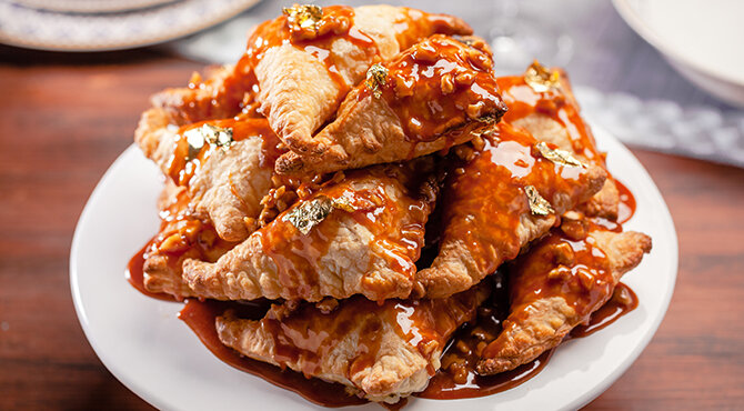 تخبز في الفرن حتى تكتسب لوناً بنياً ذهبياً.