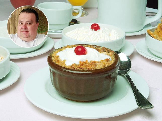 5- يضاف فوق الكرواسان مزيج الحليب للمرة الأخيرة، ومن ثم تسكب طبقة من الكريما.