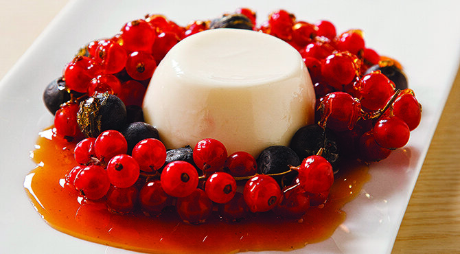 يرص التوت حول البانا كوتا فوق الصوص.