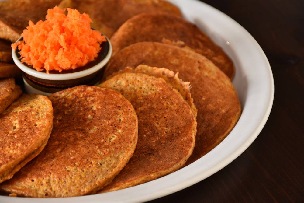 - نضع البان كيك بالجزر في الطبق، ونقدمه مع المشروب المفضل.