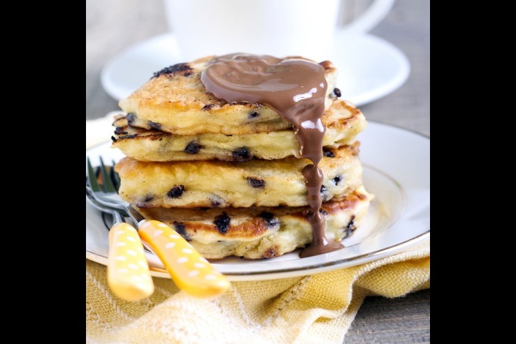اكتشفي طريقة عمل بان كيك برقائق الشوكولاتة والنوتيلا من مطبخ اكلات.