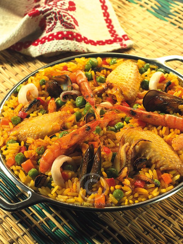 - يستكمل طهي البايلا في الفرن المسخن على درجة حرارة 160 لمدة 15 إلى 20 دقيقة.