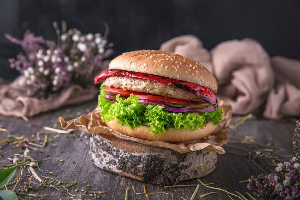- ويوضع فوقها مخلل الخيار والطماطم والبصل، ثم يوضع البرجر.