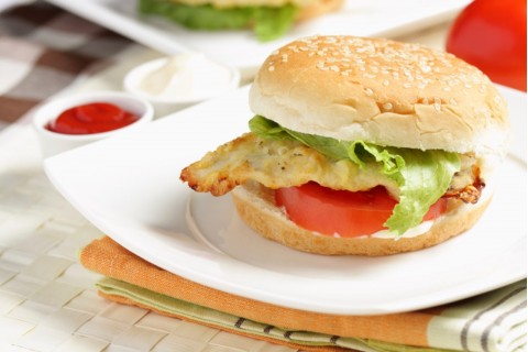 - تضاف الطماطم فوقها ثم صدر الدجاج المشوي ثم الخس المفروم ناعماً.