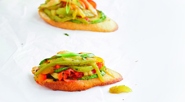 تُتبل الكوسة بزيت الزيتون والملح والفلفل وتشوى، وتوضع فيها علامة ثم توضع جانبًا.