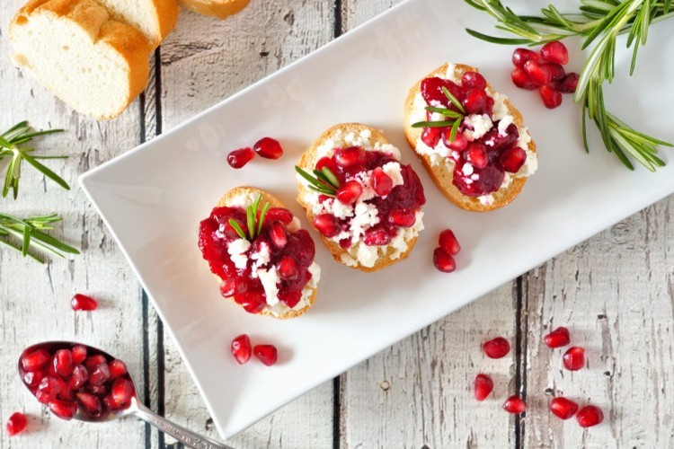 بروشكيتا جبن الفيتا بالرمان بثلاث مكونات فقط