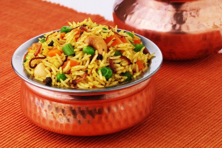 7. اسكبي البرياني في طبق التقديم وقدميه إلى جانب سلطة الخيار باللبن حسب الرغبة.