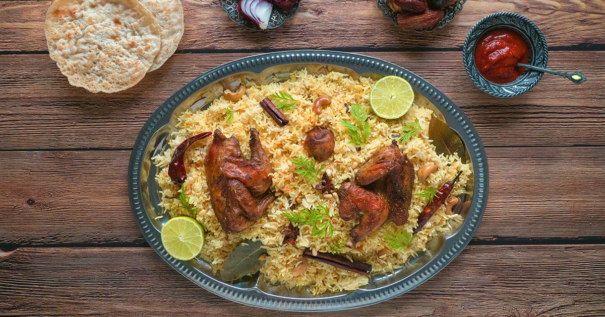 6- ضعي البرياني في طبق التقديم، زيّنيه بالكاجو وقدّميه. ألف صحة!