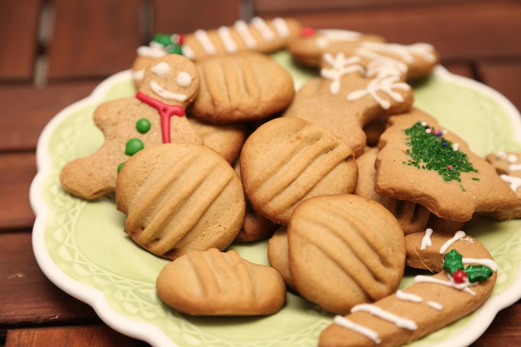 1. باستخدام العجانة الكهربائية، ضعي الطحين، والسكر البني، والزنجبيل المبشور والمطحون، و100 غم من الزبدة، واخلطي المكونات جيداً.