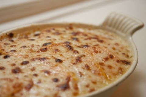 7. يصب البشاميل فوق البطاطا وتوضع الصينية فى الفرن عند درجة حرارة 180 حتى تأخذ لون ذهبى تترك حتى تبرد وتقدم بالهنا والشفا