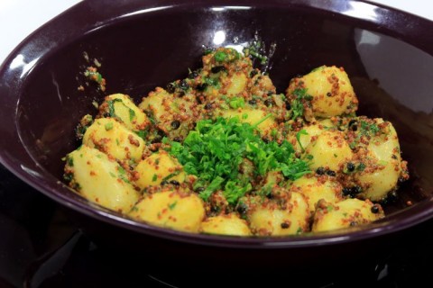 - هنحمر البطاطس في الزيت ثم نضعها في التتبيلة ونقلبها جيدا و تقدم بألف هنا.