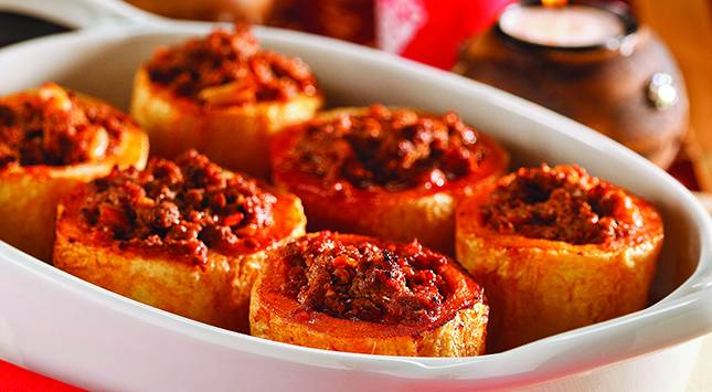تغطى الصينية بورق ألومونيوم وتوضع في فرن متوسط الحرارة لمدة ساعة، ثم يرفع ورق الألومونيوم ويستمر في الطهي لمدة نصف ساعة أخرى.