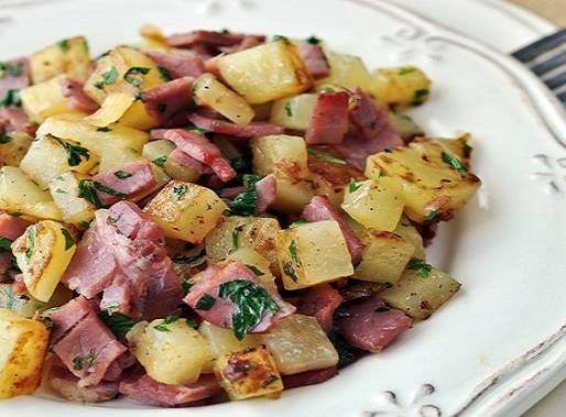 - تضاف مكعبات البطاطس مع تحريك المقلاة حتى تحمر.