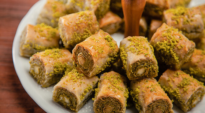 تسقي بالشيره البارده وترش بالفستق وتقدم